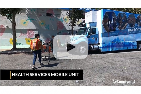 The Department of Health Services deploys a mobile van to provide medical care to unhoused residents living in encampments, like this visit to MacArthur Park.