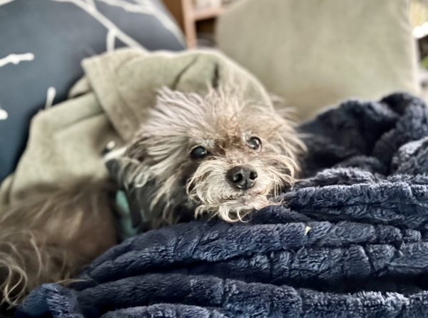 And she was incredibly sensitive to my moods. On Wednesday, Feb. 11, after we’d come home from her grooming, I tuned into ice dancing at the Olympics. The Canadian couple skated so beautifully to “Starry, Starry Night,” tears started streaming down my face. Pepper bolted up, looking at me quizzically but with doggie empathy before coming over to lick my tears and give me kisses. She eased slowly across my chest to hug me.