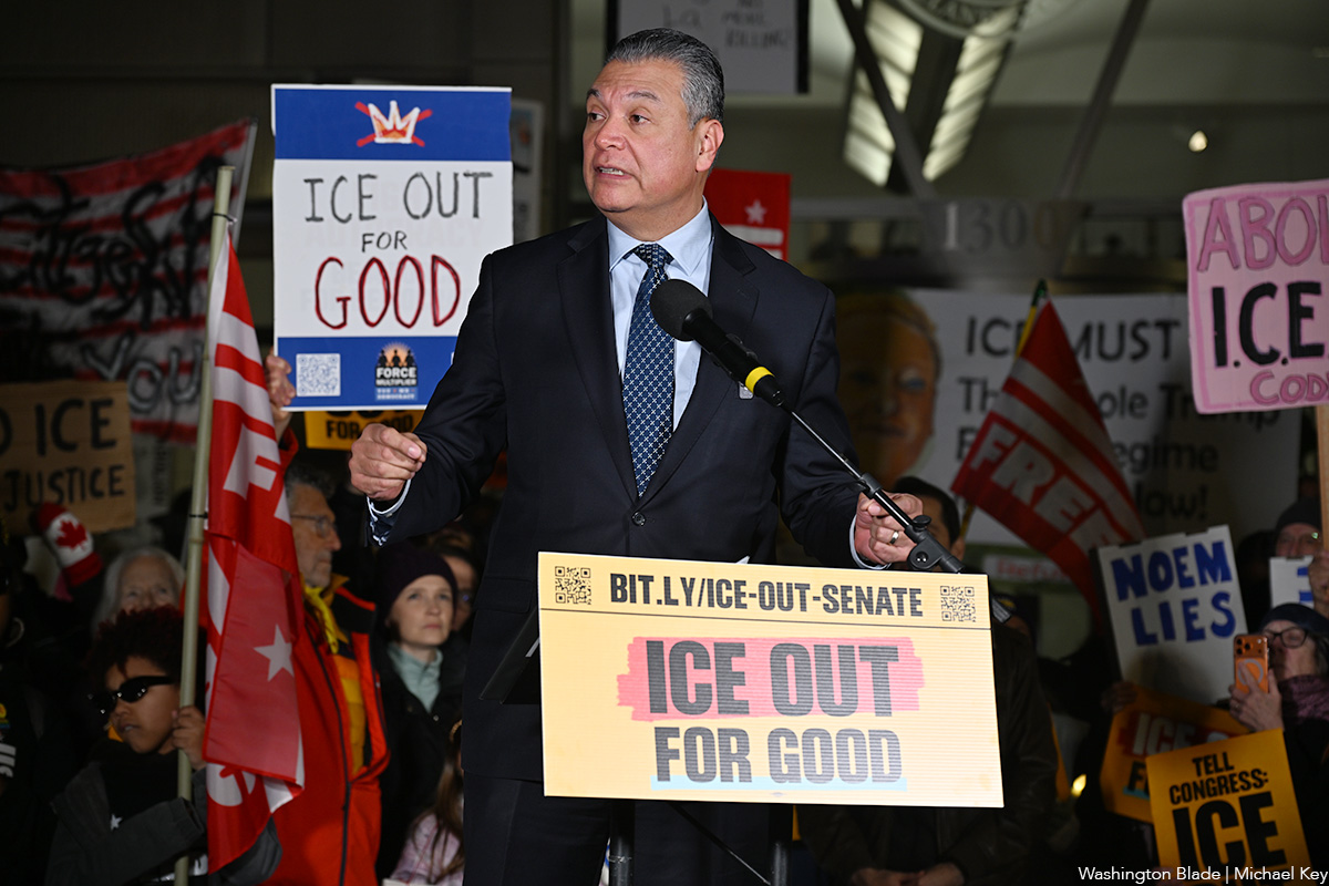 U.S. Sen. Alex Padilla (D-Md.) is among those who spoke at an “ICE Out for Good” protest that took place outside U.S. Customs and Border Protection’s headquarters in D.C. on Tuesday.