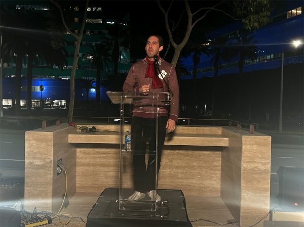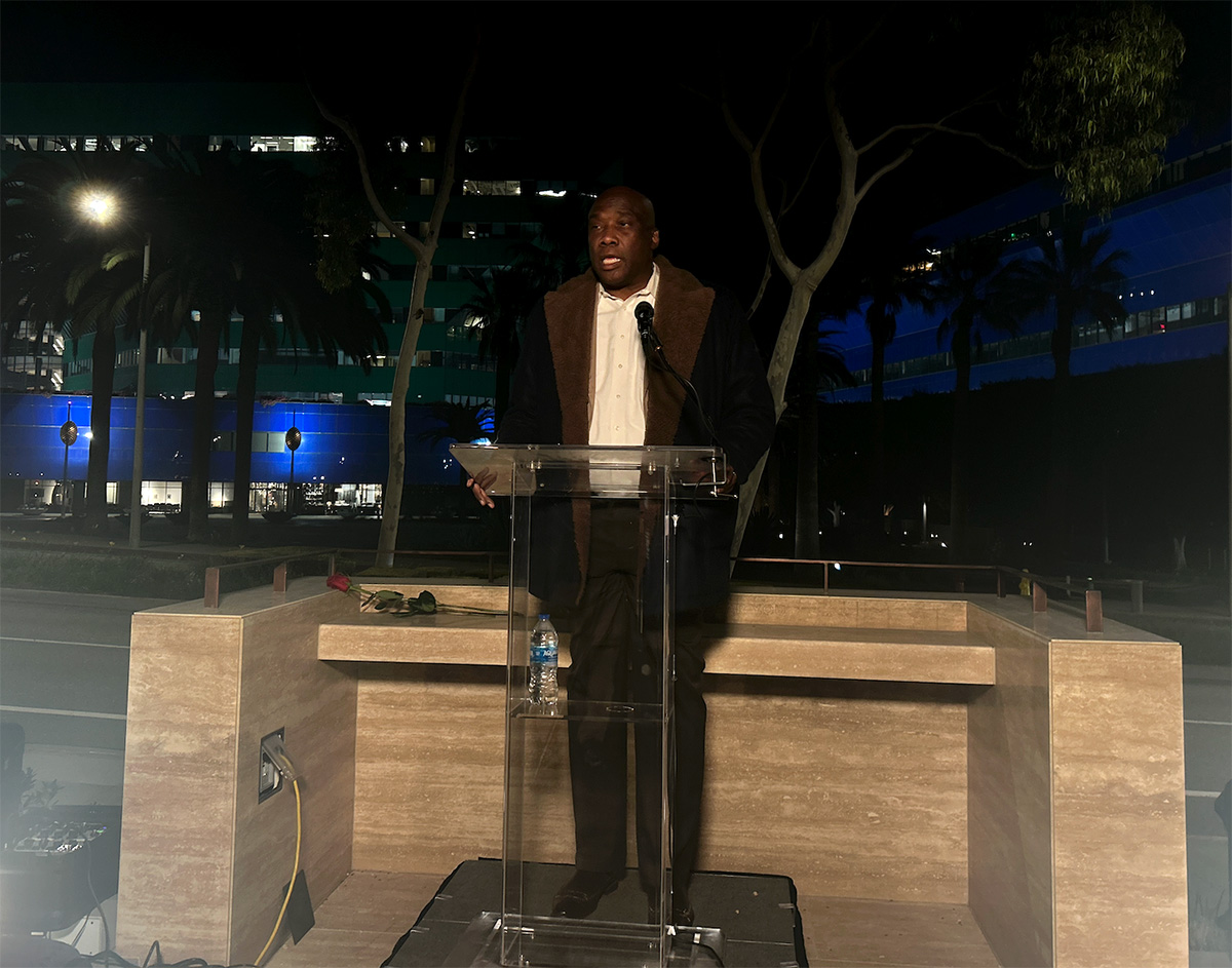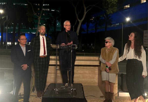 And yet, over 50 community members filled the empty spaces of West Hollywood’s AIDS monument yesterday evening, waiting in the night chill as city officials delivered impassioned statements and writers from APLA Health read personal pieces that centered a grief and love for those lost to the epidemic.