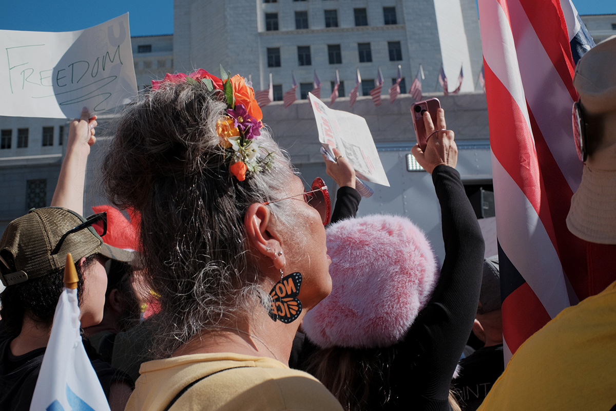Protestors cheered at the top of their lungs with each passing speech, and each clear and explicit denouncement of the current administration. “There’s no rally like what’s happening here in Los Angeles,” said Assemblymember Bryan. “This is where Black, brown, poor, indigenous, everyday people come together…Washington D.C. doesn’t care about us, and we know that. But, we care about each other, don’t we? We believe that health care is a human right, don’t we? We believe that housing is a human right, don’t we? We will stand up to authoritarianism, won’t we? Because when we fight together, what happens? We win!”