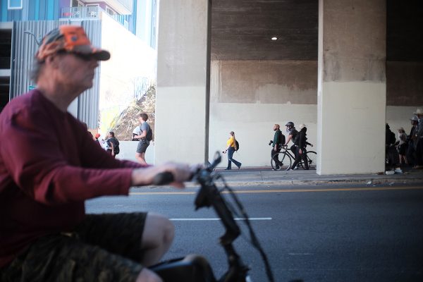 As people began to grow restless, the march finally began, taking them to a highway overpass.