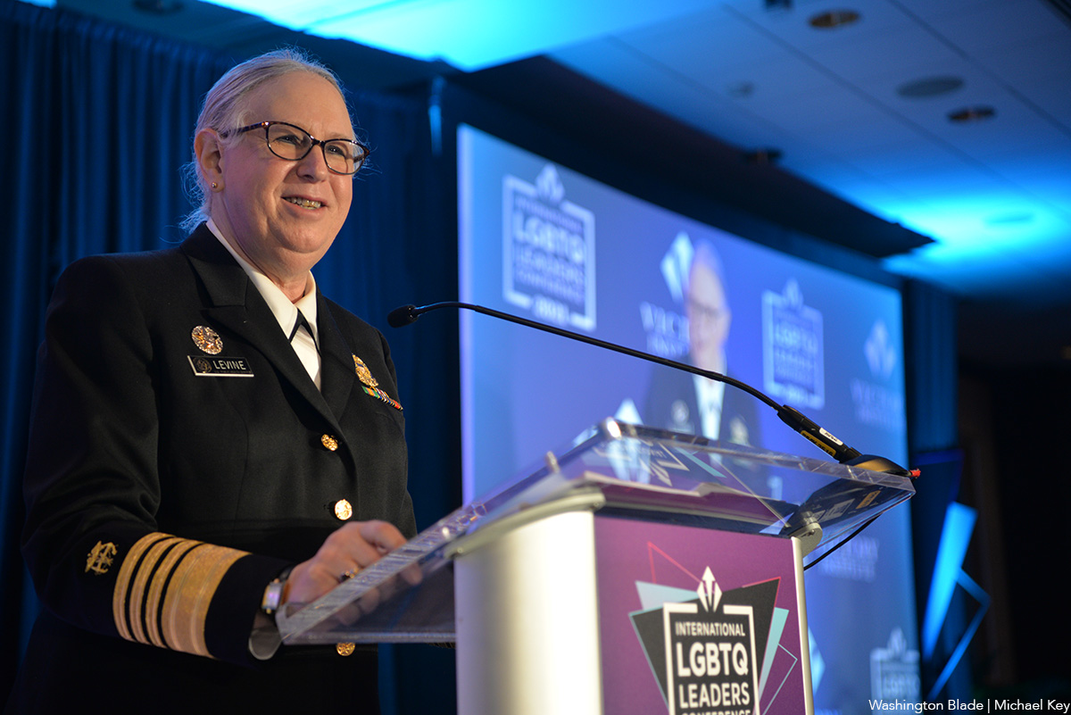 Adm. Rachel Levine speaks at the International LGBTQ Leaders Conference on Dec. 2, 2021. (Washington Blade photo by Michael Key)