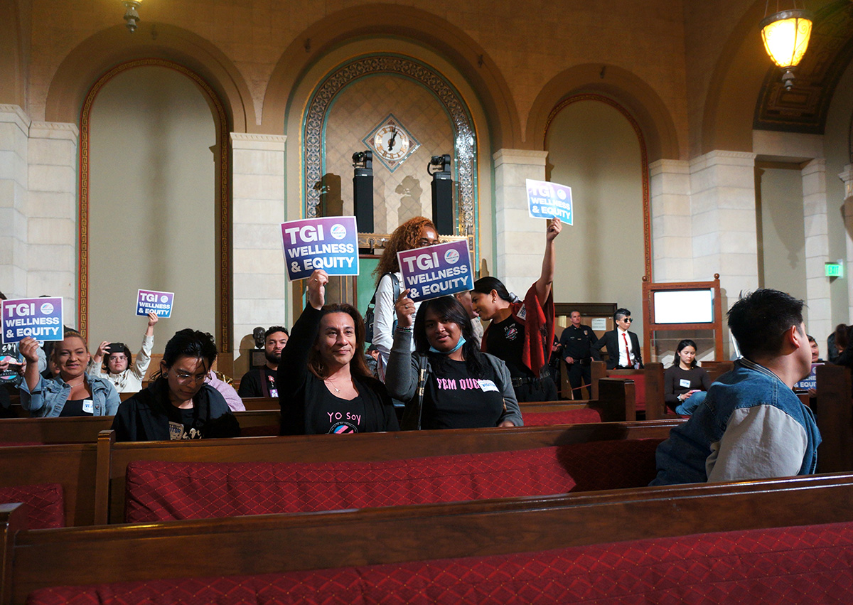 During public comment, TLC president and CEO Bamby Salcedo requested that the council move forward with the initiative. Aside from general support, she asked that two council members act as co-sponsors and petitioners for the initiative. This way, TGI WE can be added as an official agenda item for future city council meetings, which would get the ball rolling for the initiative’s funding goals.